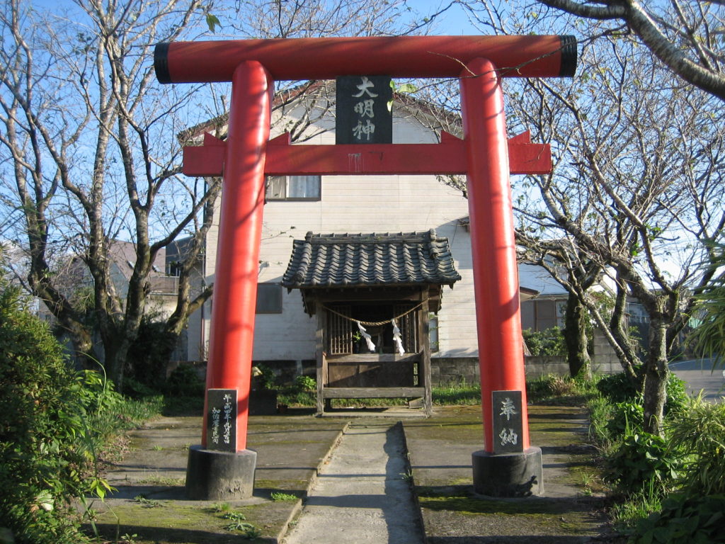 延亨5(1748)年1月27日、宮原氏の宅地とつながった敷地に造営された須木持大明神社(通称でめじん)である。