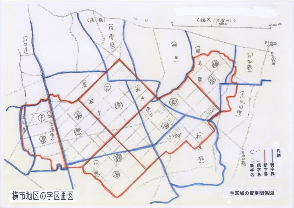 開拓された土地は、戦前は飛行場として使用され、戦後に農地転用されたもので、従前の字の境界は用をなさず、新しい境界に変更する必要があったからである。