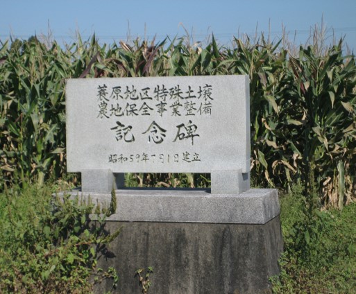 蓑原地区特殊土壌農地保全事業整備記念碑